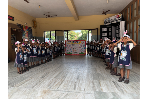 Our school organized a cheerful and exciting Bunny Camp on 10th October 2025 for the students of Kindergarten to Std. II. The camp was designed to provide young children with a fun-filled day that also focused on important values and life skills. The little ones participated in various engaging activities like storytelling, feeling flash card identification and role play, craft work, and My Favourite healthy food display. These activities helped them learn about good manners, sharing, helping others, cleanliness, and being kind to animals and nature – all in a playful and enjoyable way.
