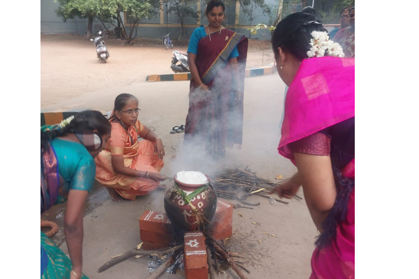 A special highlight of the celebration was the staff members cooking Pongal for the students. Pongal was prepared in the traditional way using earthen pots and was then served to all students, making the occasion more special and memorable.The students actively took part in the celebrations by dancing to traditional music, playing Kabaddi, and engaging in fun-filled activities.