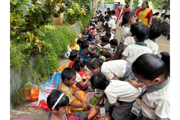Environmental Science topics are made interesting through hands on activities in Early years. At Sairam Vidyalaya – Madurai, KG students set up their own vegetables and fruit market as a reinforcement to the topic ‘ Healthy Food- on Tuesday, November 28, 2023. Each brought fruits and vegetables which was displayed in a creative way by the staff of Pre- Primary.